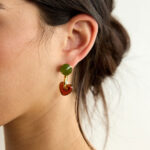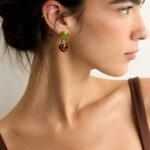 עגילי לב זכוכית מושלמים בגוון חום שוקולד ראש עגיל בציפוי זהב ושיבוץ קריסטל בגוון ירוק זית משגע!