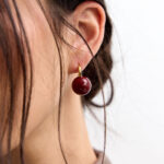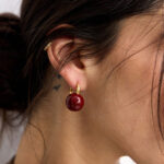 עגילים משגעים שפשוט מוסיפים צבע ושיק! חישוק בציפוי זהב עם תליון כדור מצופה אמייל בורדו משגע!