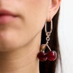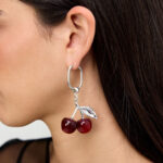 עגילי חישוק כסופים עם תליוני דובדבן היסטרים לאמיצות בלבד!