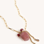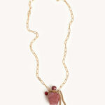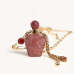 שרשרת עדינה אך מאוד מיוחדת , ארוכה עם תליון בקבוקון בושם עשוי אבן חן קוורץ תות בגוון ורוד עתיק!