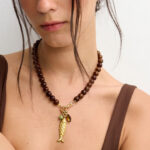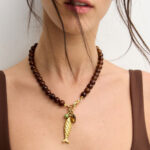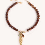 שרשרת אבני חן ג’ייד מלזיה בגוון חום מהמם ובשילוב צ’ארמס משגעים!! שרשרת מיוחדת ומתאימה ללוק חגיגי או יום יומי!