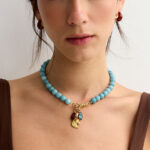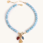 שרשרת אבני חן ג’ייד מלזיה בגוון תכלת מהמם ובשילוב צ’ארמס משגעים!! שרשרת מיוחדת ומתאימה ללוק חגיגי או יום יומי!